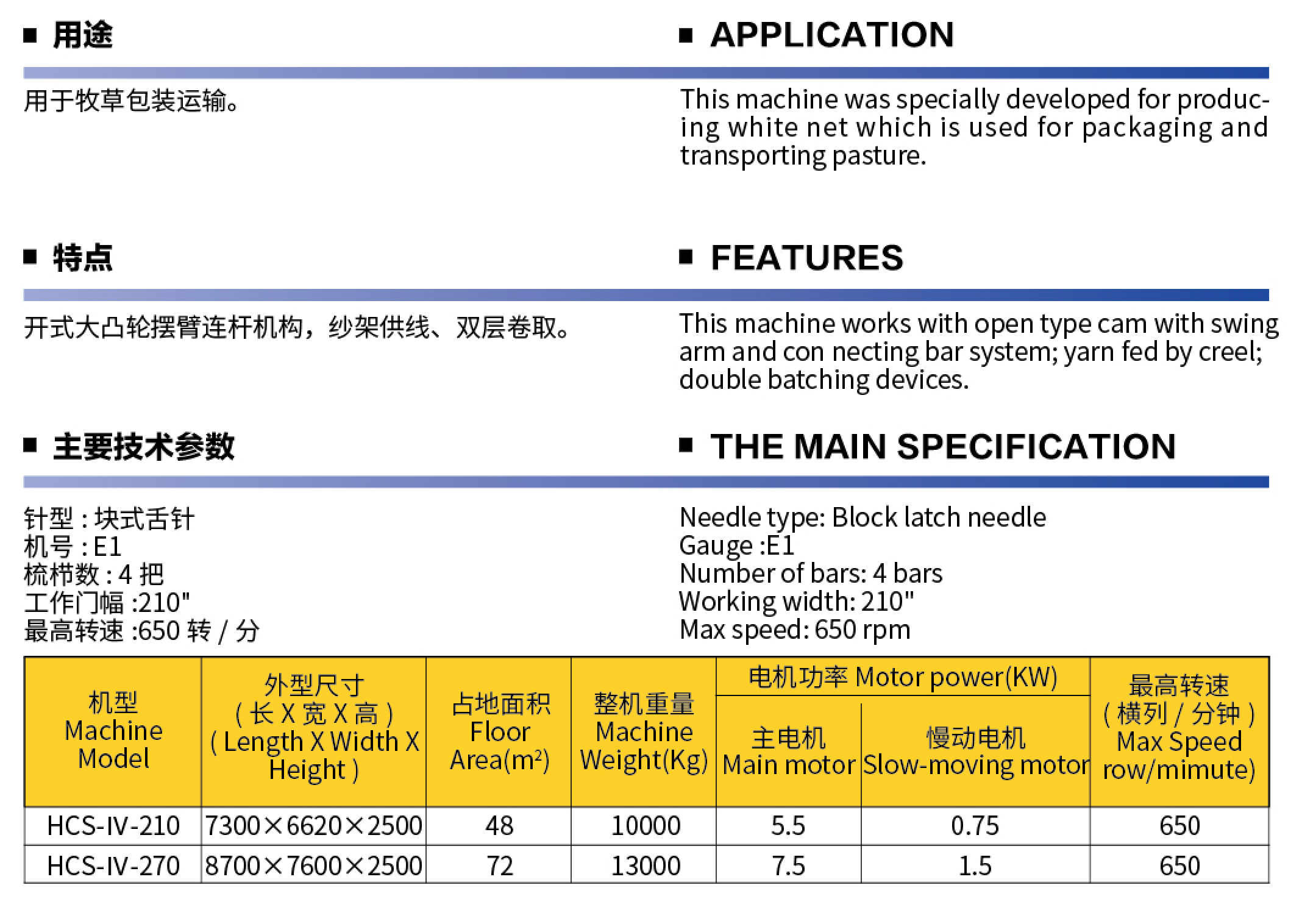 HCS-IV双针床捆草网经编机